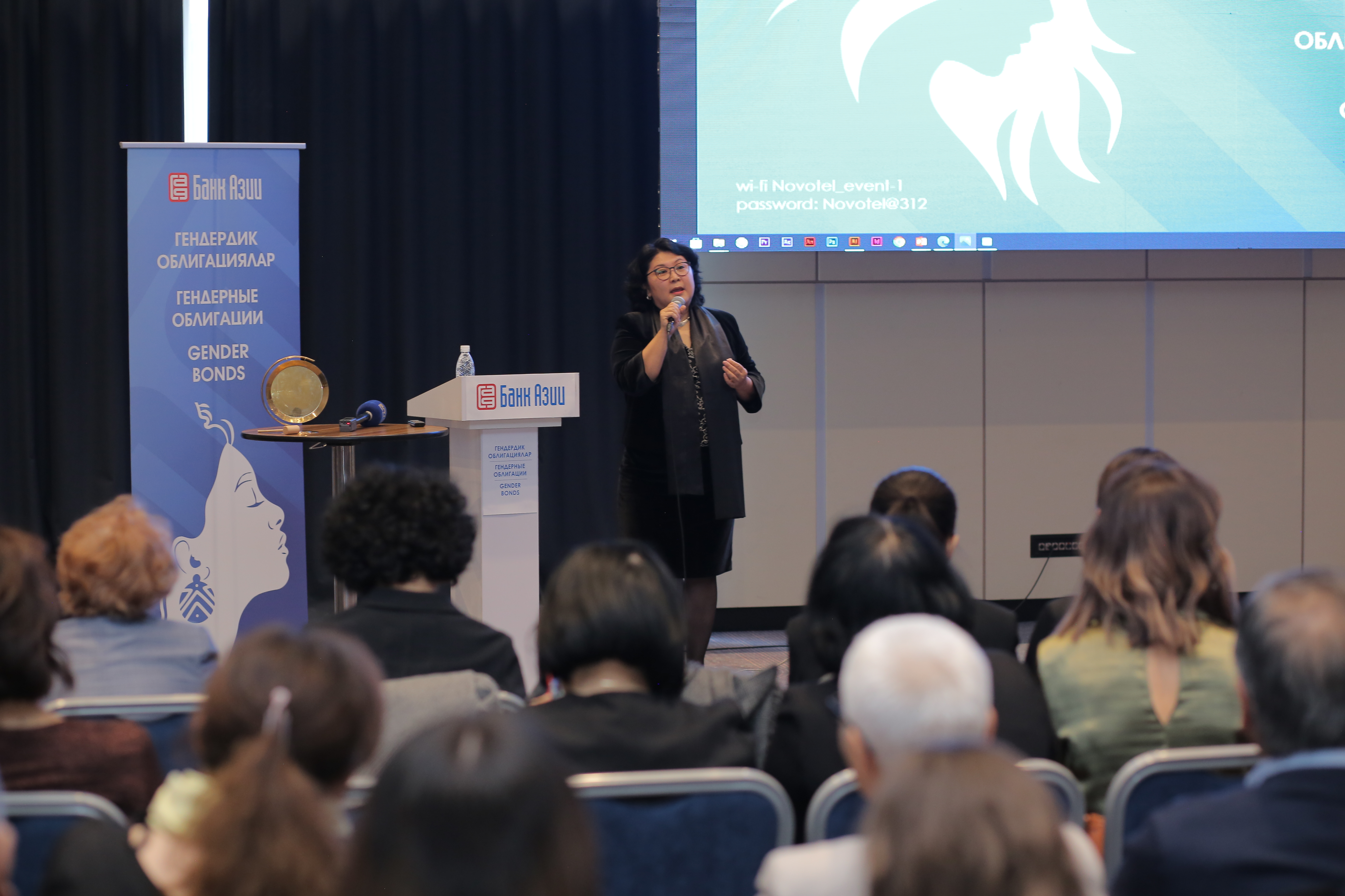 Андан соң гендердик облигацияларды ишке киргизүү долбоорунун бет ачарын “Азия банкынын” башкармалыгынын төрайымы Земфира Атакишиева өткөрдү.
