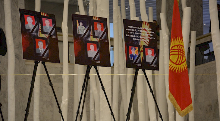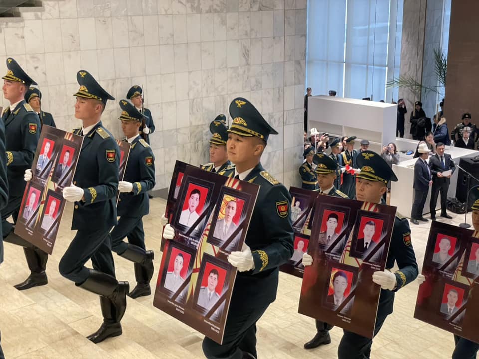 Иш-чаранын соңунда чек ара жаңжалынан кайтыш болгон жоокерлердин портреттери Улуттук тарых музейге өткөрүлүп берилди.
