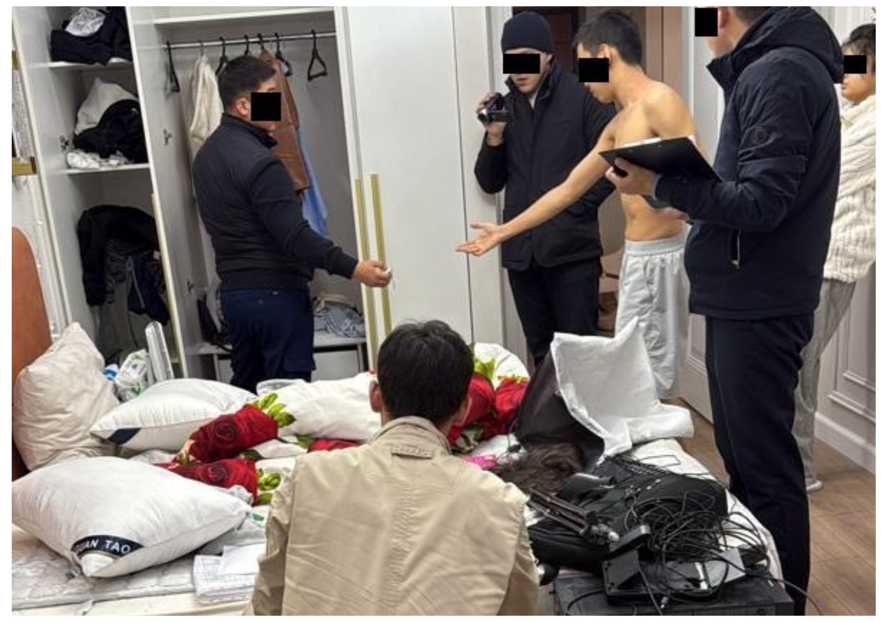 Уюшкан топтун мүчөлөрү жашыруун маалыматты сактоо жана мыйзамсыз иш-аракеттерин жашыруу максатында Бишкектин ар кайсы райондорунан батирлерди ижарага алып жашагандыгы аныкталган. Кармалгандардын бардык турак жай даректеринде шашылыш тинтүү иштери жүргүзүлүп, веб-камералар, жарык берүүчү жабдуулар, компьютердик жабдуулар жана башка техникалык жабдуулар, эротикалык костюм жана атрибуттар, сексуалдык мүнөздөгү онлайн берүүлөрдү жүргүзүүгө арналган буюмдар табылып, алынган.