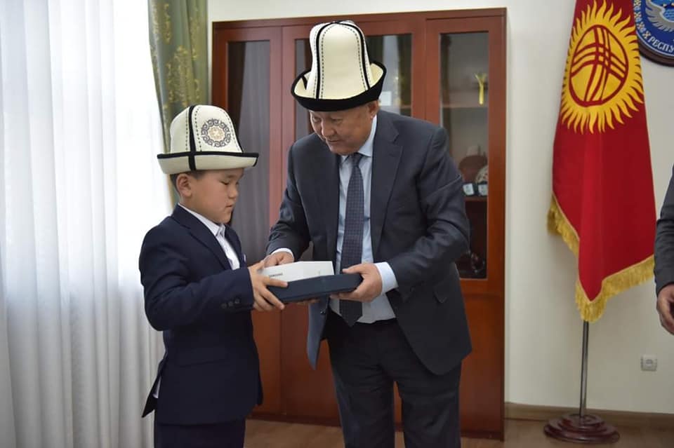 Бишкек шаарынын мэри Эмилбек Абдыкадыров 10 жаштагы манасчы Касымбек Бердикуловду кабыл алды.