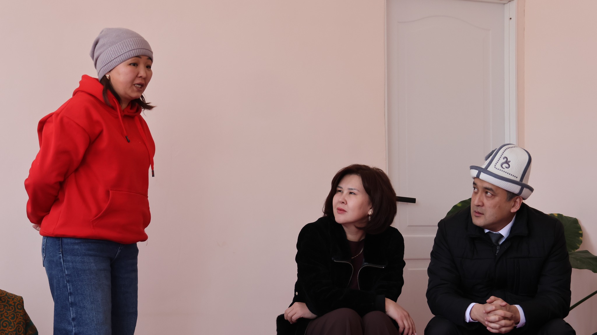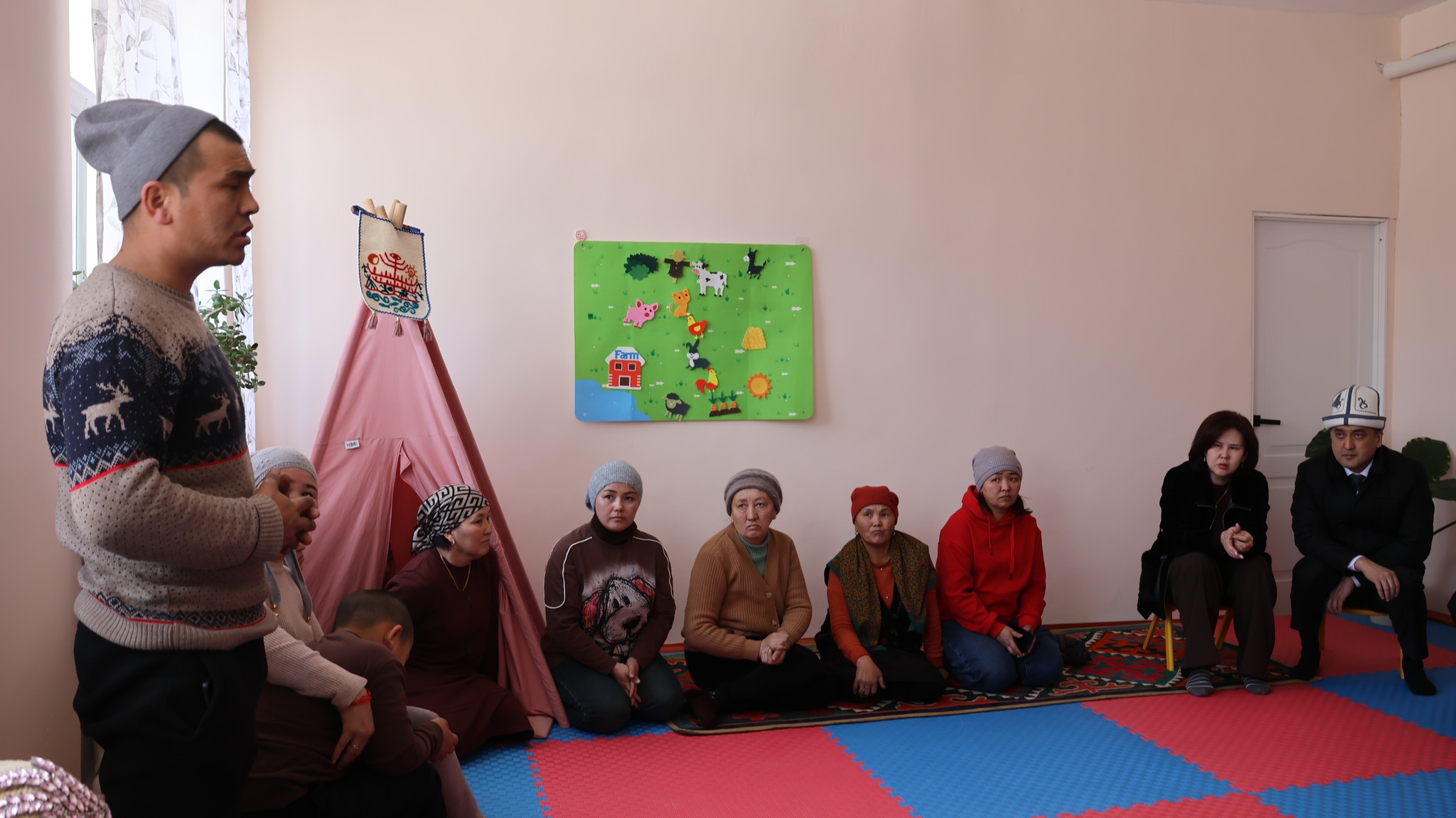 Нарында Кыргыз Республикасынын эмгек, социалдык камсыздоо жана миграция министри Канат Сагынбаев «Мейкин» реабилитациялык борборунда кызмат алып жаткан майыптуулугу бар балдардын ата-энелери менен жолугушту.
