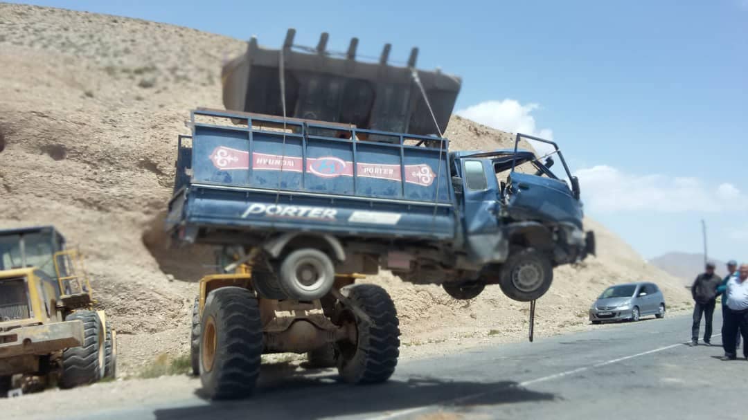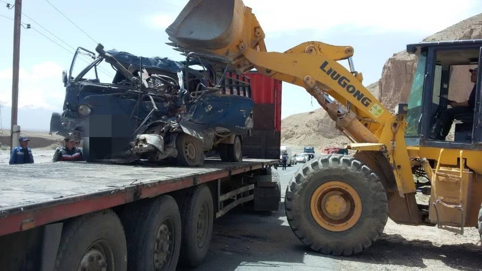 Маалыматка ылайык, Ош-Сары-Таш-Карамык унаа жолунун 66-чакырымында Volvo үлгүсүндөгү оор жүк ташуучу унаанын чиркегичиндеги контейнери, карама-каршы жолдо келе жаткан Hyundai Porter үлгүсүндөгү унаанын кабинасына түшүп кеткен.