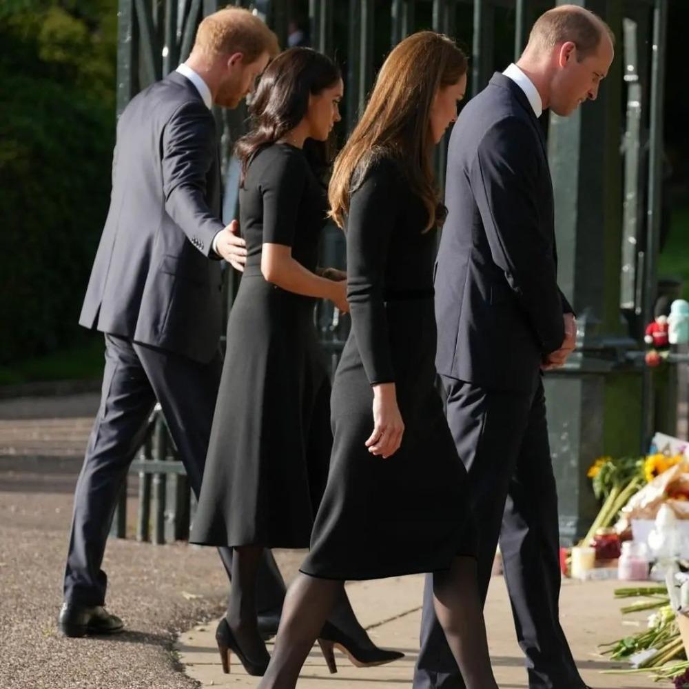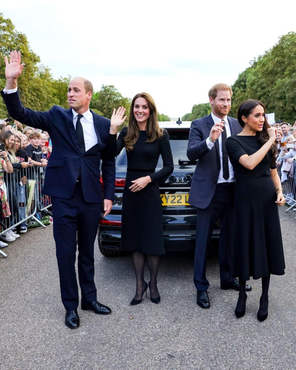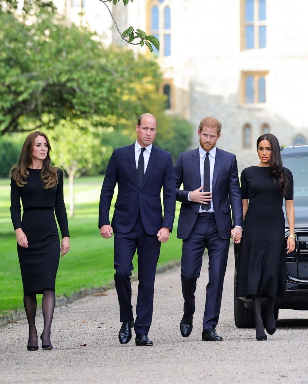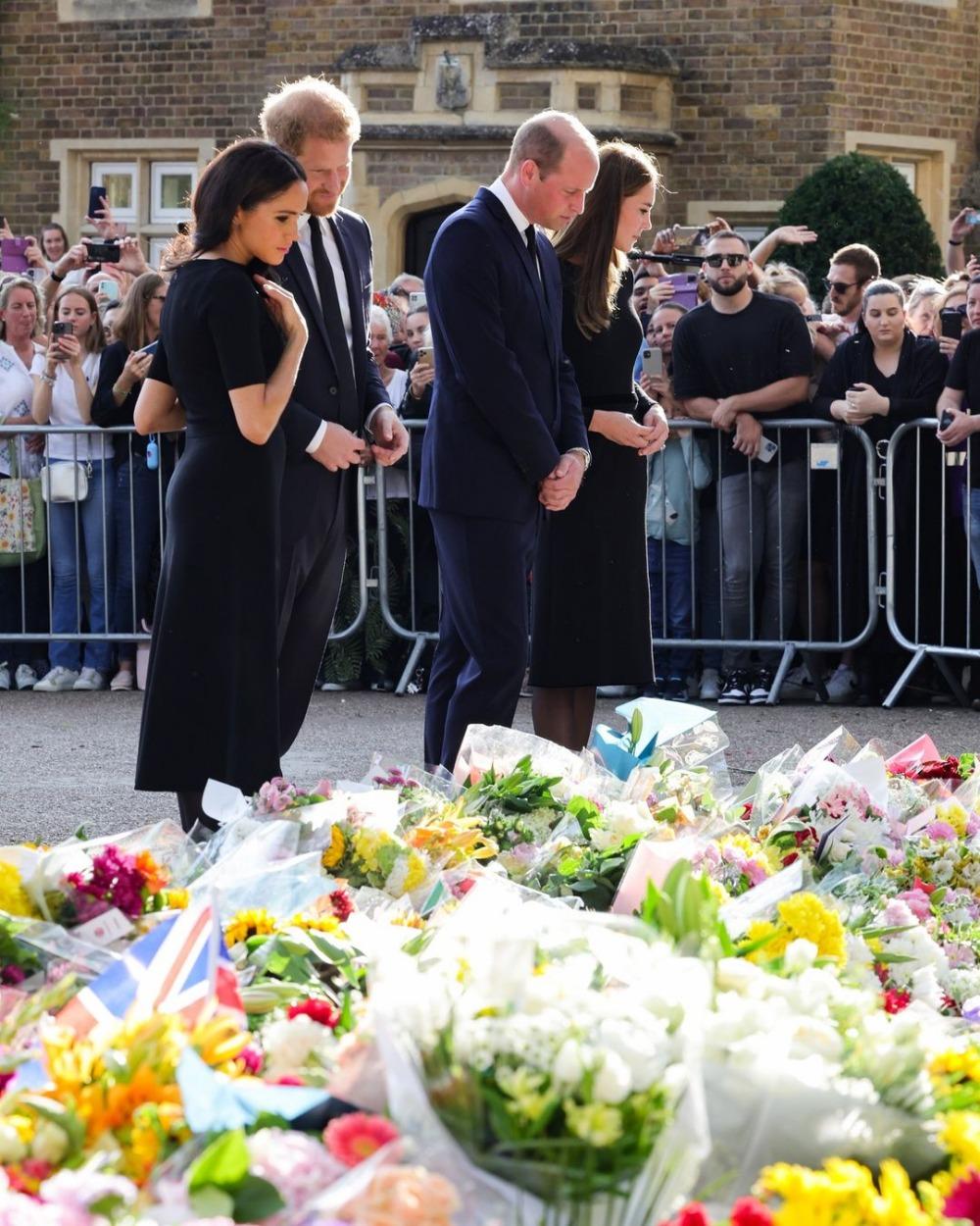 Уэльстин ханзаадасы жана ханбийкеси Уильям жана Кейт Миддлтон Сексекс герцогу жана герцогинясы Гарри жана Меган Маркл менен бирге британиялыктар Елизавета IIнин элесине калтырылган гүлдөрдү жана сүрөттөрдү кароо үчүн Виндзор сепилинин аймагына барышты. Бул тууралуу британиялык Channel 4 News телеканалы билдирди.