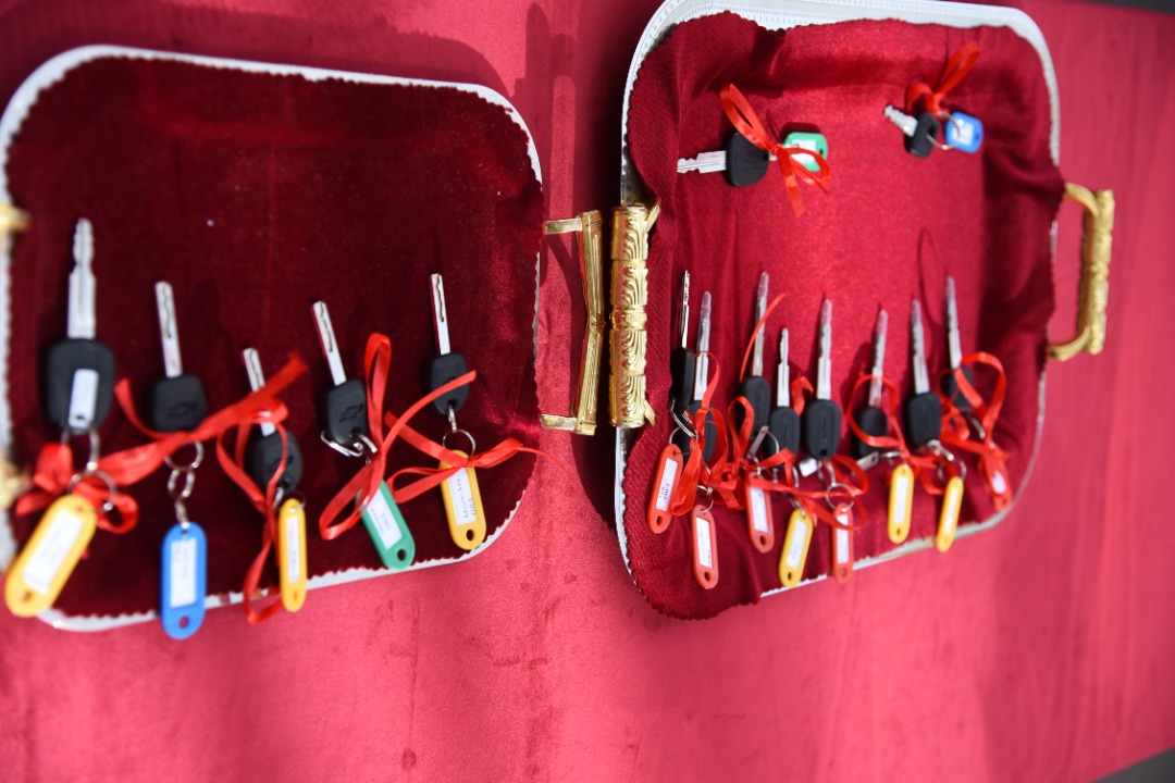 Бүгүн өзүңүздөр күбө болгондой, бул унааларды Чүй, Жалал-Абад, Ысык-Көл облустарынын ички иштер бөлүмдөрүнүн ишмердиктерин жакшыртууга, элге сапаттуу сервистик тейлөө көрсөтүүгө карата тапшырып жатабыз.