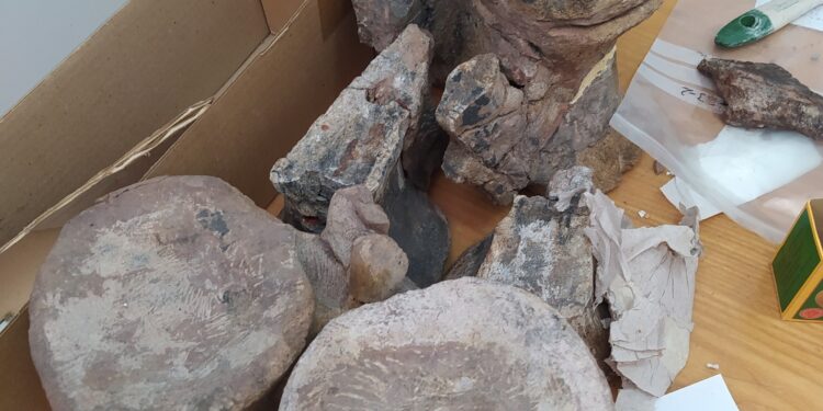 Анын айтымында, динозаврдын шыйрагынын узундугу 63 сантиметрди түзгөн. Сүрөттө жандыктын омурткалары дагы көрсөтүлгөн.