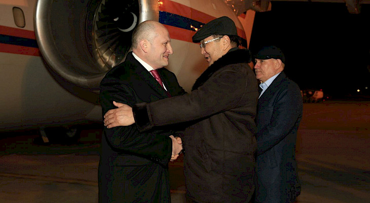 Маалыматка ылайык, кадырлуу меймандарды "Манас" эл аралык аба майданынан кыргызстандык кесиптеши Бообек Ажикеев жана Россиянын Кыргызстандагы элчиси Николай Удовиченко баштаган топ тосуп алышты.