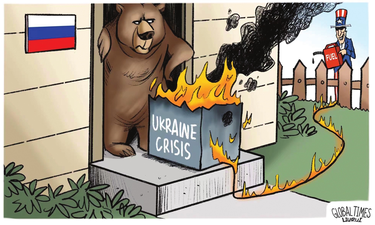 Кытайдын Тышкы иштер министрлигинин басма сөз катчысы Чжан Хэцин Украинадагы азыркы кырдаалда АКШнын ролу тууралуу карикатура жарыялады. Ал сүрөттү Твиттердеги расмий баракчасына жарыялады.