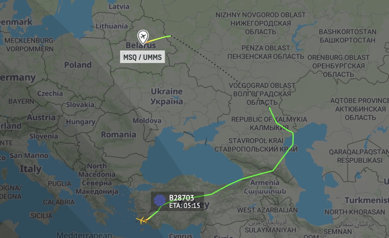 Ишембиге караган түнү, 24-июнда Беларустун президенти Александр Лукашенконун учагы Минсктен Түркияга адаттан тыш каттам менен багыт алган. Бул тууралуу Radarbox.com кызматынын маалыматына таянуу менен аталган өлкөнүн маалымат каражаттары жазып чыгышты.
