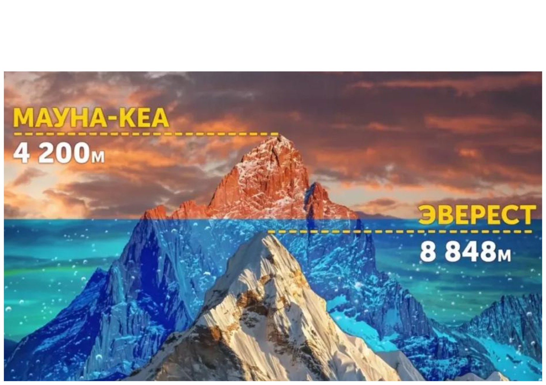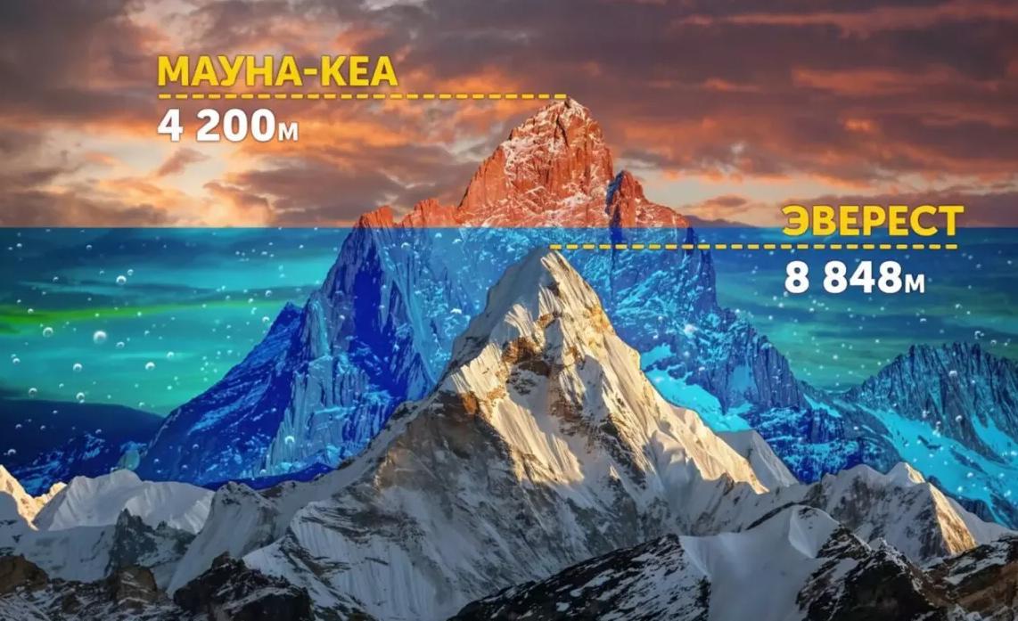 Анткени Тынч океандын тереңинде жашыруун жаткан Мауна-Кеа деген чыныгы гигант бар. Ырас, Эверест деңиз деңгээлинен эң бийик чекит экендиги талашсыз. Бирок тоолорду башкача, түп негизинен чокусуна чейин өлчөсөк, көрүнүш түп-тамырынан өзгөрөт.