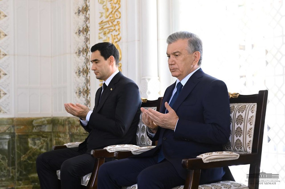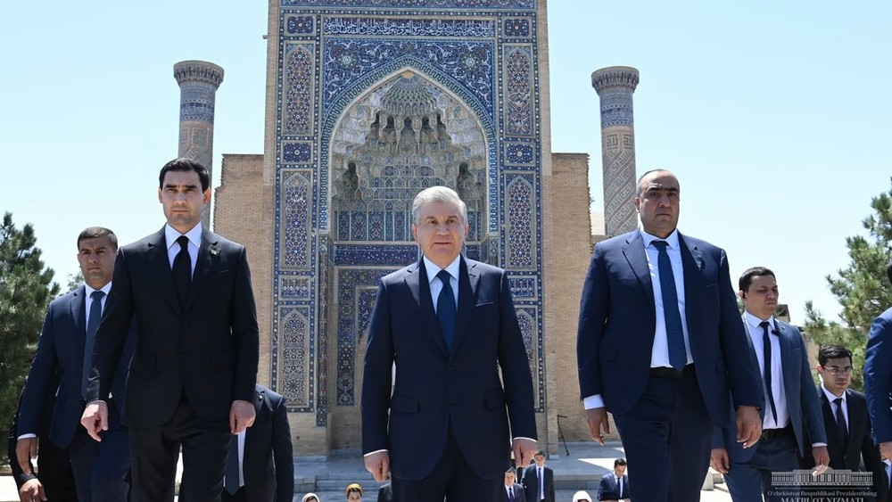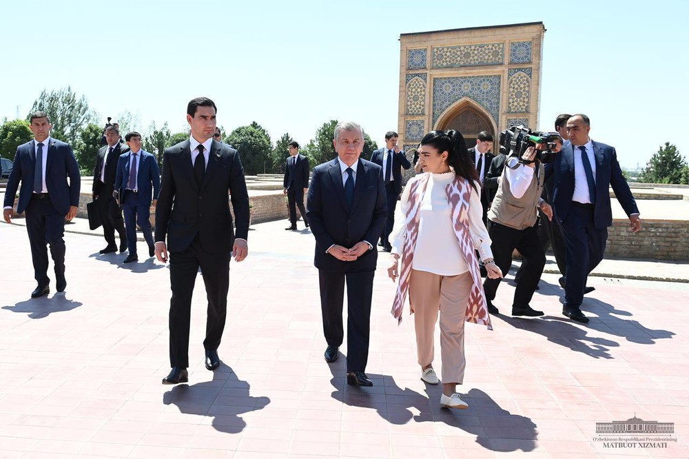 Андан соң Өзбекстан менен Түркмөнстандын президенттери кол башчы Амир Темурдун күмбөзүнө зыярат кылышты.
