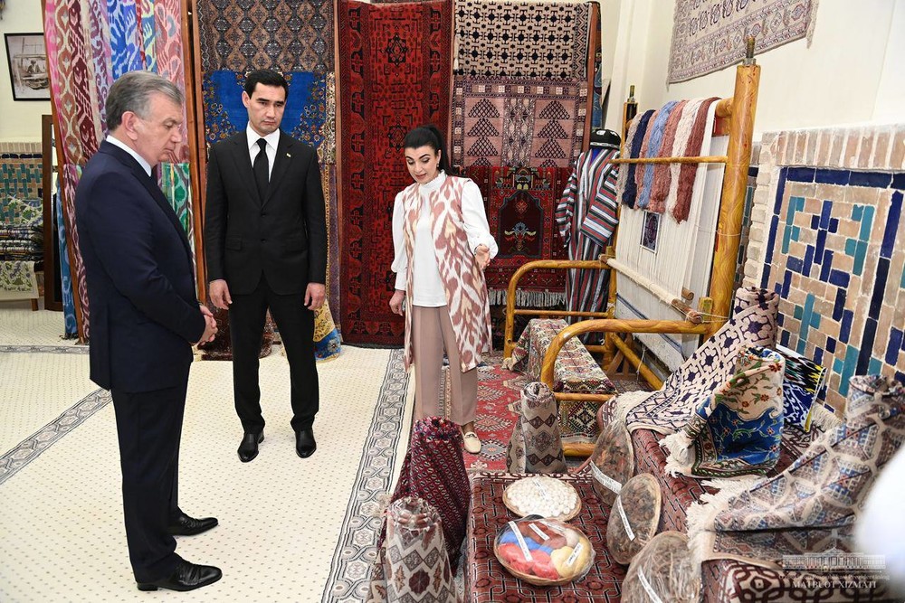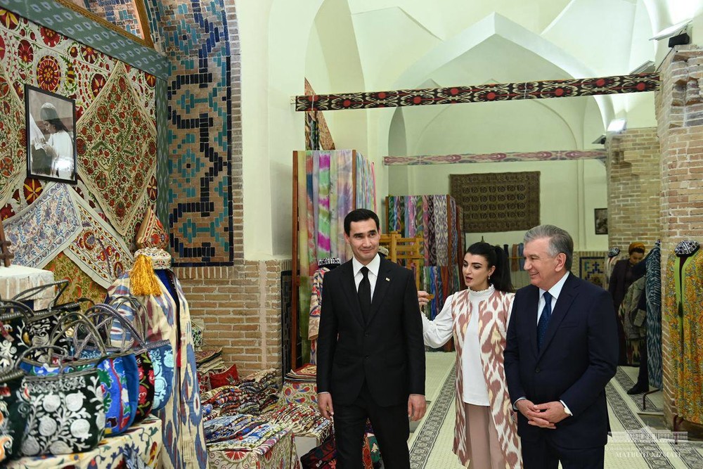 Мамлекет башчылары Регистан ансамблине барышты. Бул жерде Шавкат Мирзиёев менен Сердар Бердымухамедовду эскерүү үчүн сүрөткө түшүштү.