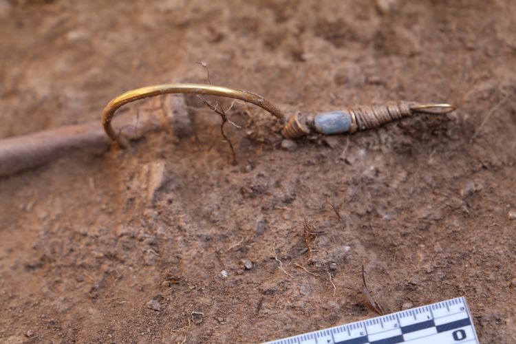 "Кочкор өрөөнүндөгү Кызарт ашуусуна жакын жерден тарыхый эстелик чыккан. Аял таш менен тегеректелген шакекченин ортосуна атайын жасалган таш үкөктүн ичине коюлуп, үстү жабылган. Ал жерден изилдөөчүлөр эки алтын сөйкө тапкан. Мындай зер буюмдар буга чейин Казакстанда табылган жана алар биздин заманга чейинки VII-IV кылымдарга таандык делүүдө", — деп жазылат билдирүүдө.
