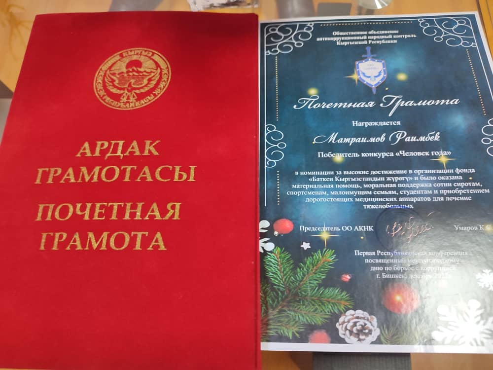 Маалым болгондой, Райымбек Матраимов «Баткен Кыргызстандын жүрөгү» фондунун уюштуруудагы жогорку жетишкендиги үчүн сыйланды.
