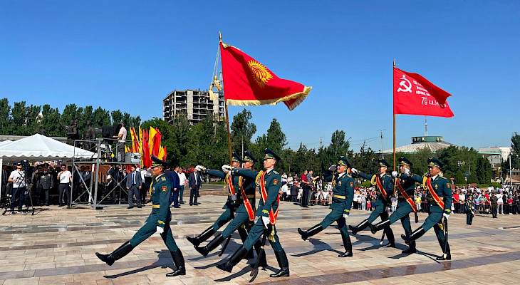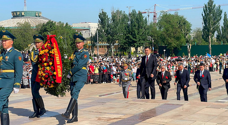 Улуу Жеңиштин 77 жылдыгына карата өлкө башчы Садыр Жапаров "Өчпөс отко" гүлчамбар койду.