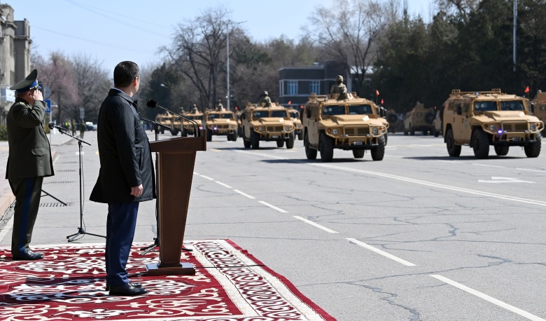 "Буга чейин жалаң гана гранттардын эсебинен жардам катары эски аскердик техникалар келип турган. Мындан ары заманбап, жаңы техникаларды өз акчабызга сатып алып турабыз", — деди президент.
