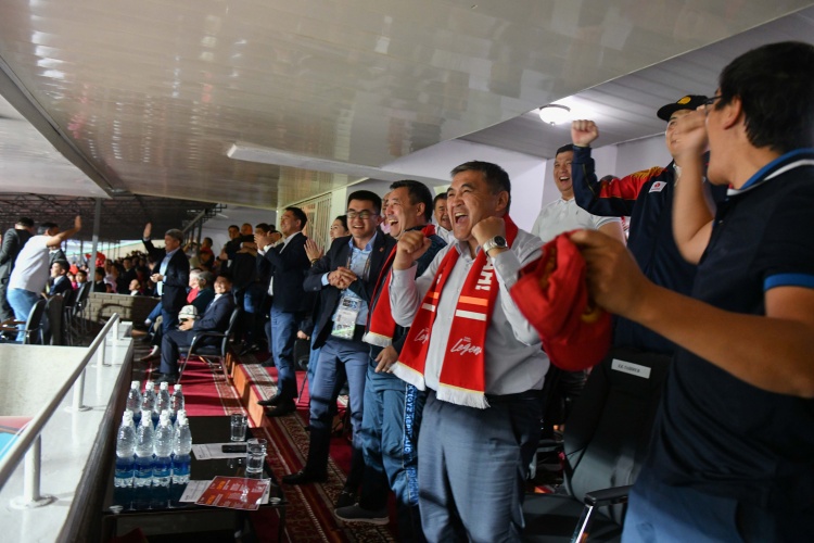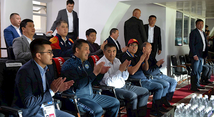 Кыргызстандын президенти Садыр Жапаров 8-июнда, борбордук Дөлөн Өмүрзаков атындагы стадионунда өткөн Кыргыз Республикасынын улуттук курама командасы менен Сингапурдун курамасынын футболдук беттешине барды.