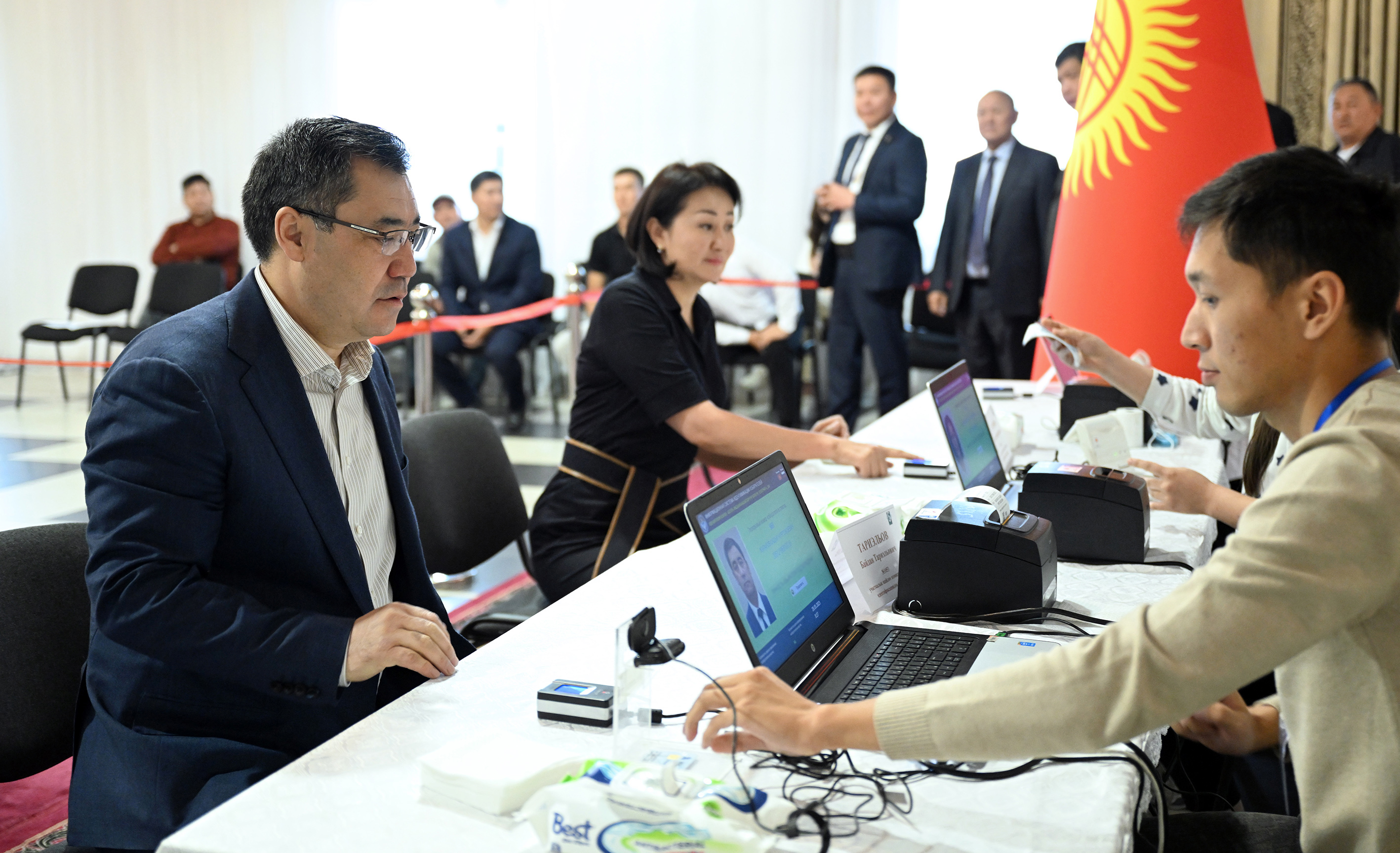 Мамлекет башчысы жубайы Айгүл Жапарова менен бирге Бишкектеги №1053 шайлоо тилкесинде добуш берди.
