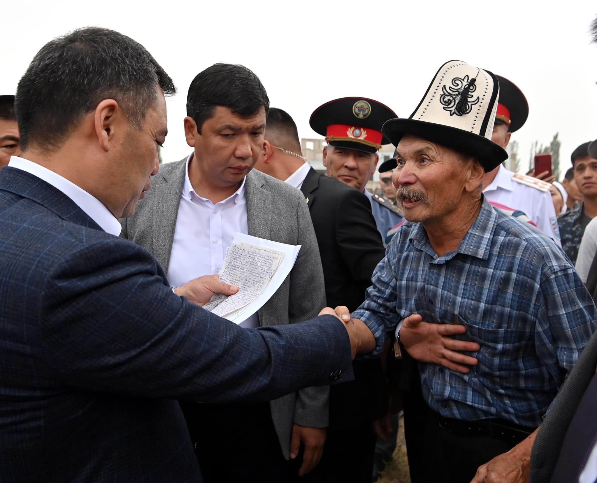 Президент Садыр Жапаров Жалал-Абад облусуна болгон иш сапарынын жүрүшүндө жолдо баратып атайын токтоп, аны күтүп турган жергиликтүү тургундар менен жолугушту. Бул тууралуу президенттин басма сөз катчысы Эрбол Султанбаев социалдык тармакка жазды.