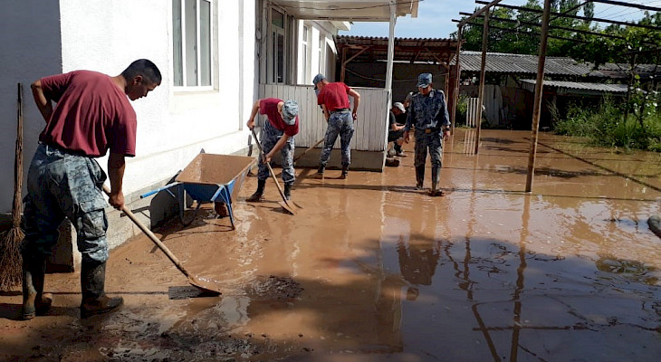 Маалыматка ылайык, 200дөн ашуун кызматкер суу жана ылайга толгон жер төлөлөрдү, мал сарайларды тазалап, турак үйлөрдүн алдын баткактан арылтууда.