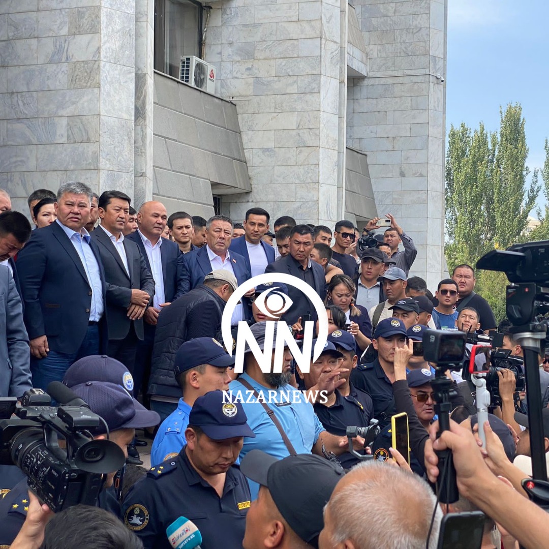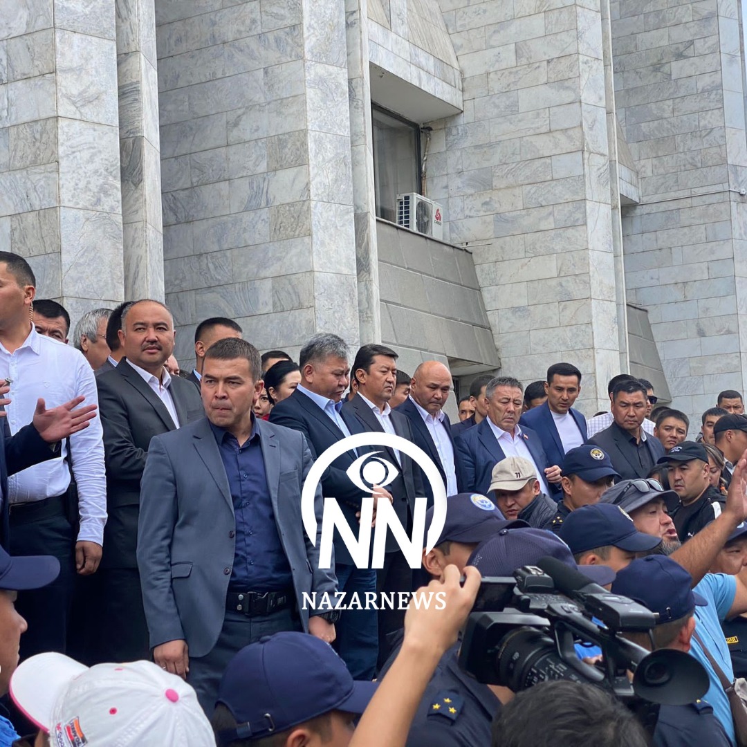 Акциянын катышуучуларына Жогорку Кеңештин төрагасы Талант Мамытов жана депутаттар жолугушууга чыкты.