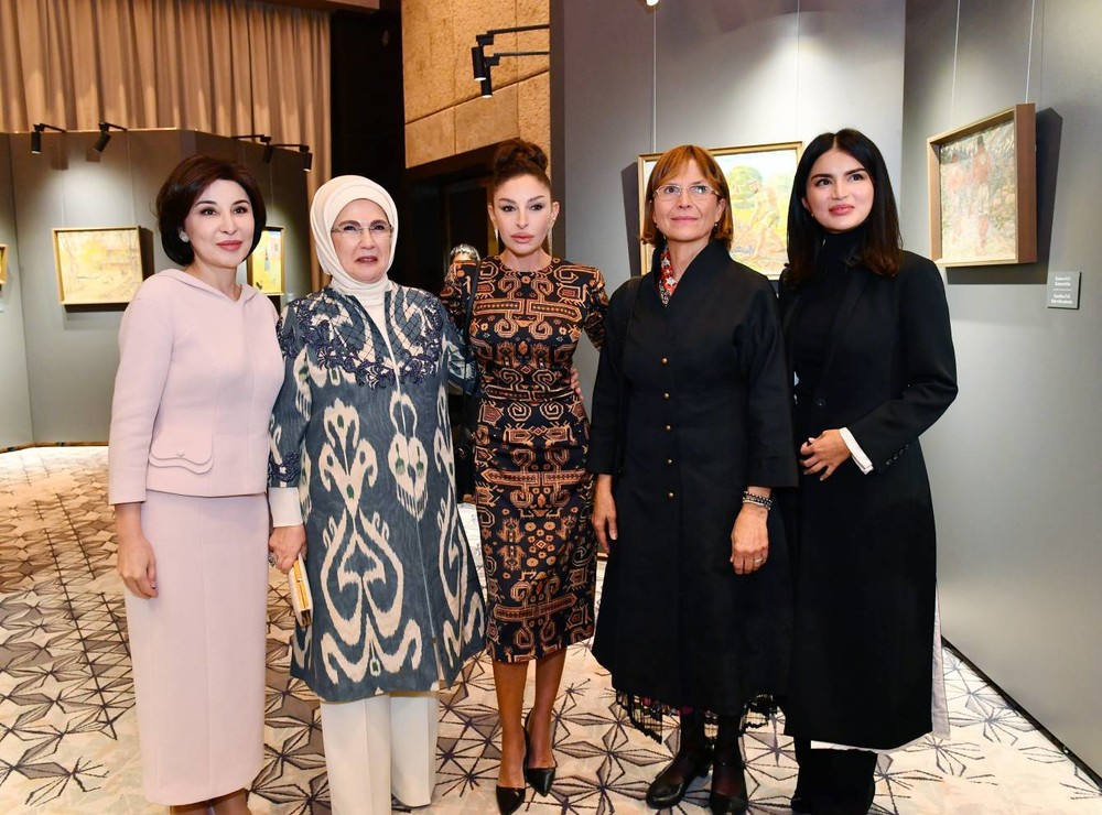 Азербайжандын биринчи айымы Мехрибан Алиева, Өзбекстандын биринчи айымы Зироатхон Мирзиёева, Түркиянын биринчи айымы Эмине Эрдоган жана Венгриянын премьер-министри Анико Левайдын жубайы Самарканддагы «Өзбекстандын түстөрү» көргөзмөсүнө катышты. Бул тууралуу Өзбекстандын ЖМКлар фондунун Камкорчулар кеңешинин төрагасынын орун басары, президент Мирзиёевдин тун кызы Саида Мирзиёева Telegram баракчасына билдирди.
