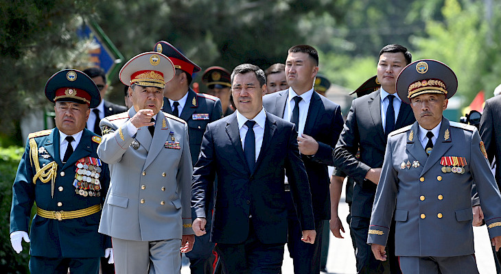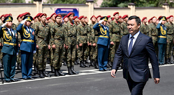 Президент куттуктоосунда 80 жыл аралыгында аскердик антка бекем турган жоокерлер абийир менен ар-намысты бийик сактап, мыйзамдуулуктан тайбай, мамлекет тарабынан тагылган маанилүү милдеттерди так аткарып, күзөттө туруп келе жатканын белгиледи.