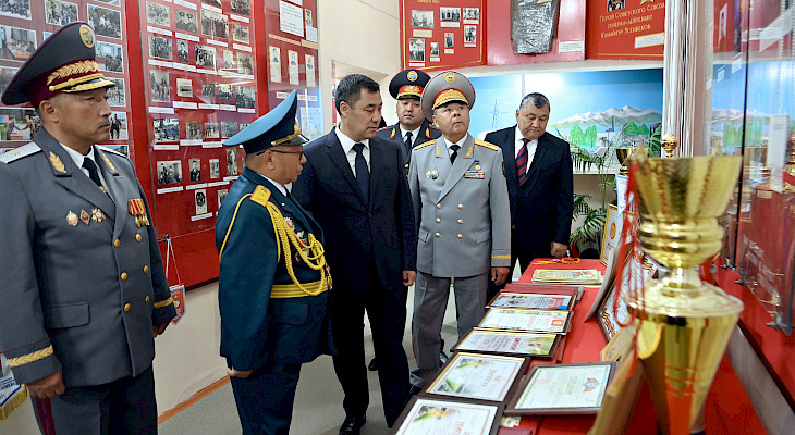 Президент Садыр Жапаров ошондой эле, Департаменттин музейи менен таанышып, Ардактуу коноктор китебине эстелик жазуу калтырды.