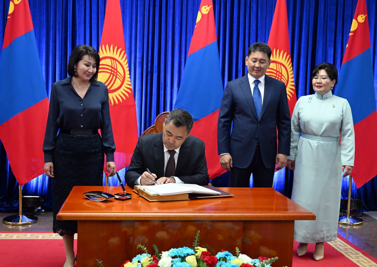 Андан кийин Мамлекеттик сарайда Президент Садыр Жапаров ардактуу меймандардын китебине Монголия элине эң жакшы каалоо-тилектери менен эстелик жазуу калтырды, андан соң мамлекет башчыларынын жубайлары менен бирге сүрөткө түшүүсү болду.