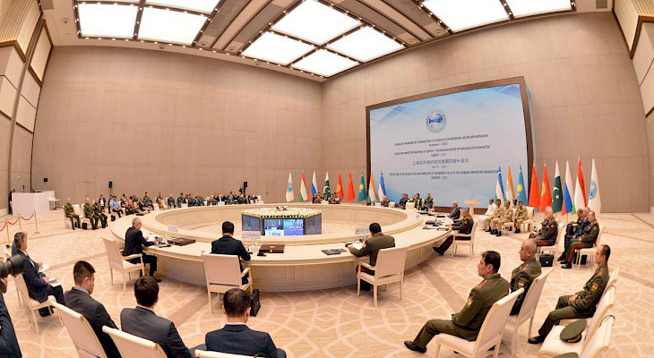 Иш-чарага Кыргызстан, Индия, Казакстан, Кытай, Пакистан, Орусия , Тажикстан, Өзбекистандын коргоо министрлери катышты.