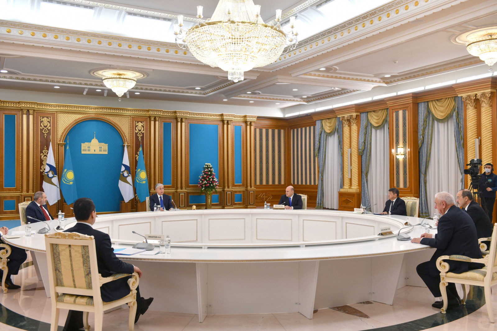 Казакстандын президенти Касым-Жомарт Токаев Нур-Султан шаарында (Казакстан Республикасы) өтүп жаткан Евразиялык өкмөттөр аралык кеңешинин кезектеги жыйынынын катышуучулары – өкмөт башчылар менен жолугушту. Бул тууралуу КР министрлер кабинетинин басма сөз кызматы билдириди.
