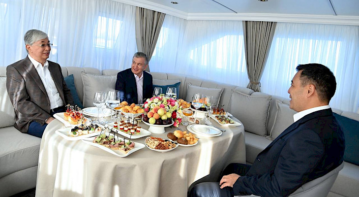 Борбордук Азия мамлекет башчыларынын төртүнчү Консультативдик жолугушуусунун алкагында Кыргызстандын президенти Садыр Жапаров, Казакстандын президенти Касым-Жомарт Токаев жана Өзбекстандын президенти Шавкат Мирзиёевдин кемеде сейилдеди. Сүрөттөрдү президенттин басма сөз кызматы таратты.