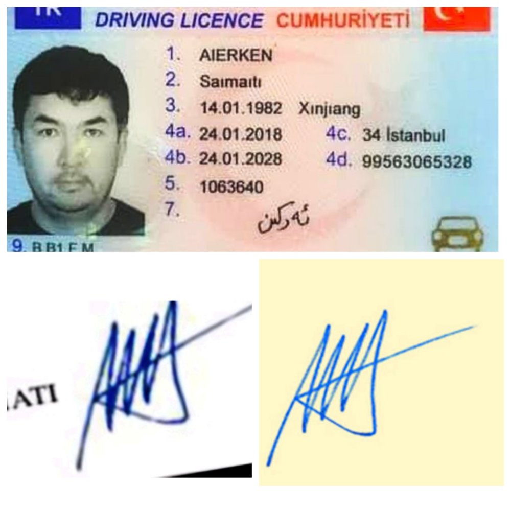 Белгилүү журналист Нарын Айып Фейсбук баракчасына Стамбулда өлтүрүлгөн Саймаитинин койгон колдорун салыштырган. Ал “Өлтүрүлгөн Айэркен Саймаитинин Түркияда алган айдоочулук күбөлүгүндө коюлган колу жана 29-майда “Азаттык” көрсөткөн анын колу менен АКШлык Адам Стэнфилддин койгон колу”, -деп жазып коюлган колдорду салыштырган.