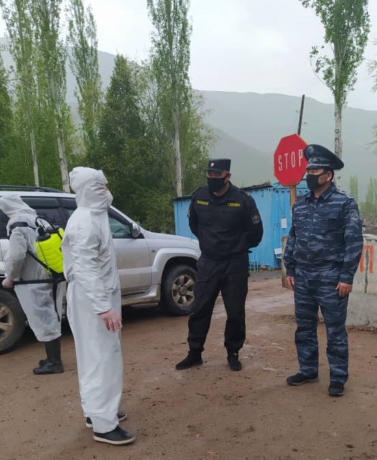 Ошондой эле, санитардык-карантиндик постторду ар убак дезинфекциялоо керектиги айтылды. Биринчи кезекте санитардык-карантиндик посттордон азык-түлүк товарларын, дары-дармектерди өткөрүү керектиги белгиленди.Ошону менен катар, ИИОнун кызматкерлерине атайын коргонуучу каражаттар (илдеттен коргонуучу халат, көз айнек, бет кап, кол кап, антисептик) жеткирилди.