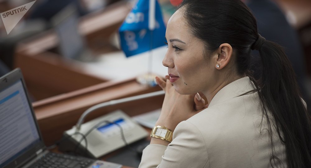 Социалдык өнүктүрүү министрлигинин жетекчисинин орун басары Лунара Мамытова өзүнүн арызын жазып жумушун тапшырууда. Лунаранын арызын учурда премьер министир карап жаткан чак.