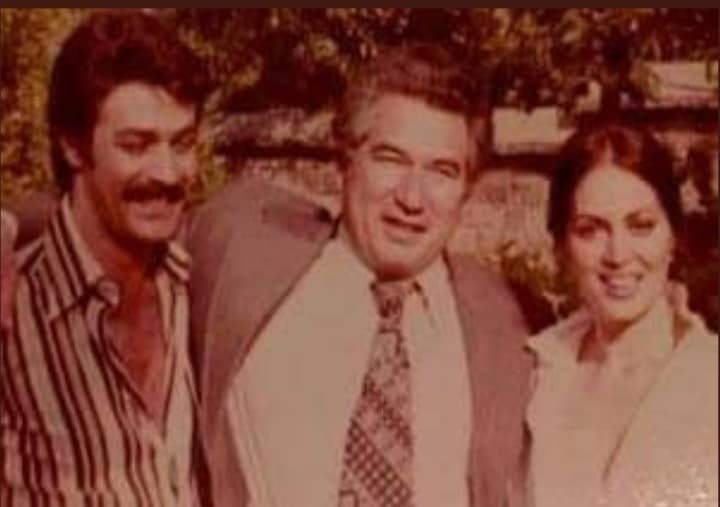 --"Чыңгыз Айтматов атабыз түрк киносунун жылдыздары, "Кызыл жоолук жалжалым" аттуу аңгемесинин негизинде Түркияда тартылган кинотасмасынын баш каармандары болгон Түркан Шорай айым жана Кадир Инаныр мырза менен чогу түшкөн сүрөттөрү. Сүрөт болжол 1978-1979 жылы тартылган",-деп жазган Дегенбаев.