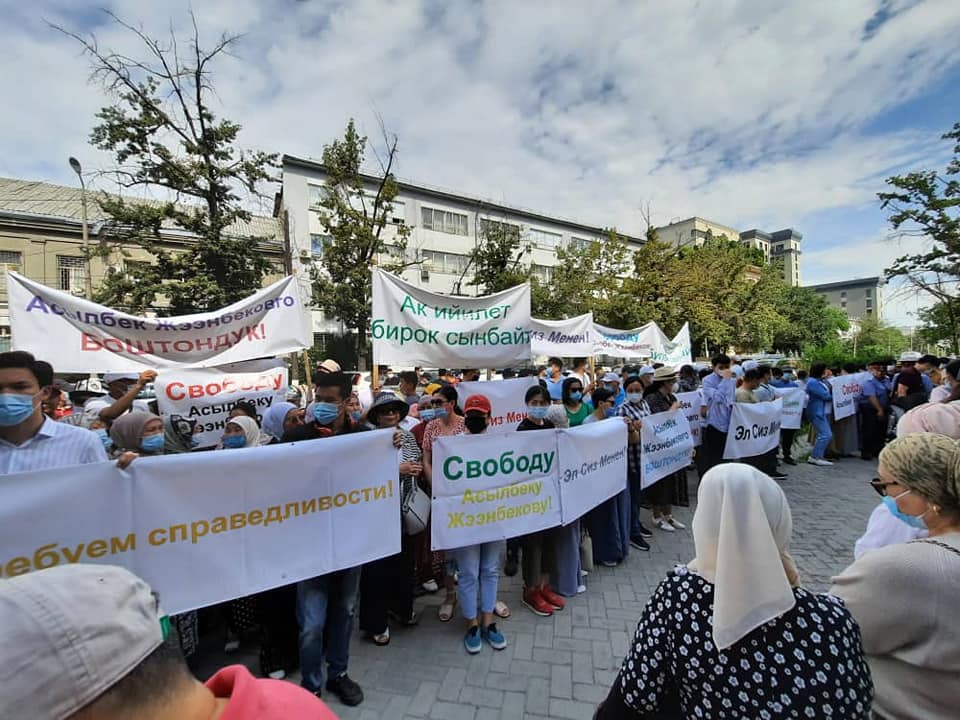 Кумтөр алтын кенин иштетүүдөгү коррупциялык иштерге байланыштуу камакка алынган Жогорку Кеңештин депутаттары Асылбек Жээнбеков менен Төрөбай Зулпукаровдун тарапташтары бүгүн, 18-июнда Бишкек шаардык сотунун алдына митингге чыгышты. Алардын 300дөн ашык тарапташтары соттон адилеттүү чечим күтүп жатышат. Акциянын катышуучулары депутаттарга каршы саясий куугунтук болуп жатканын айтып, аларды эркиндикке чыгарууну талап кылып жатышат.