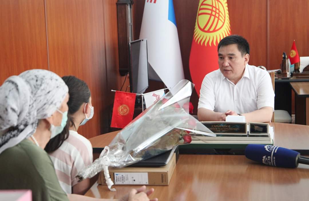 "Мамлекет башчысынын атынан ноутбук түрүндөгү белектерди өлкө региондорунун жетекчилери тапшырышты.