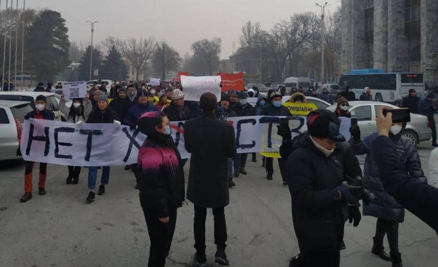 Алар Конституциянын жаңы долбооруна каршы жүрүшкө чыгышкан. Нааразычылык акциясын митингчилер темир жол бекетинин алдынан баштап, Эркиндик проспекти менен борбордук аянтка чейин тынчтык жүрүшүн жасашты.