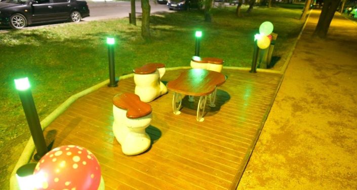 Экинчи гүлбакча 11-кичирайондо жайгашкан. «Бишкек жарык» ишканасынын адистери 17 бетон пайдубалын орнотуп, жер астына 700 метр электр зым тартышты. Коопсуздук үчүн видеокөзөмөл камералары коюлган. Бардык иштер шаардык бюджеттин эсебинен аткарылган.