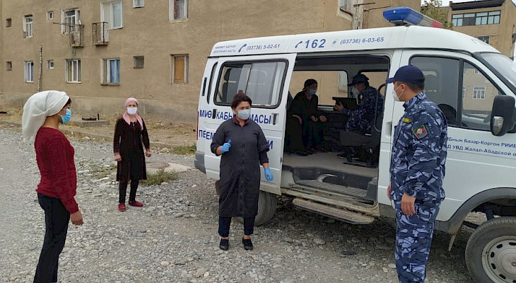Мындан сырткары, милициянын көчмө кабылдамасы унаасы менен кызматкерлер калк арасында түшүндүрүү иштерин жүргүзүшүүдө. Бегимкулов көчөсүндө жайгашкан көп кабатуу үйлөрдүн тургундарына айыл башчы менен биргеликте санитардык нормалардын сакталышы эскертилди. Жарандарга жеке гигиенаны сактоосу жана тиешелүү медициналык каражаттарды жанына алып жүрүү зарылдыгы жеткирилди.