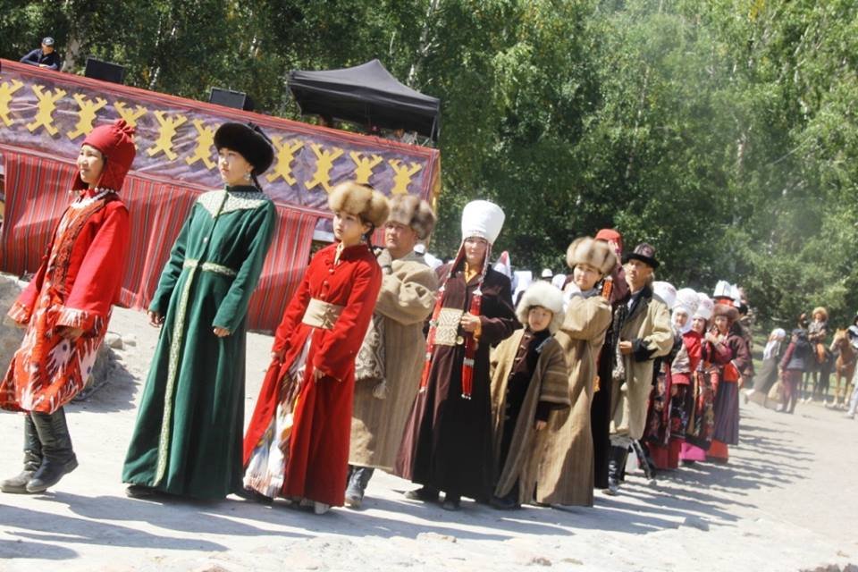 Анда бийкечтерге, айымдарга, улгайган аял затына, уул- балдарга, аксакалдарга, жигиттерге таандык көчмөн элинин доорлорун чагылдырган улуттук кийимдер көрсүтүлдү.