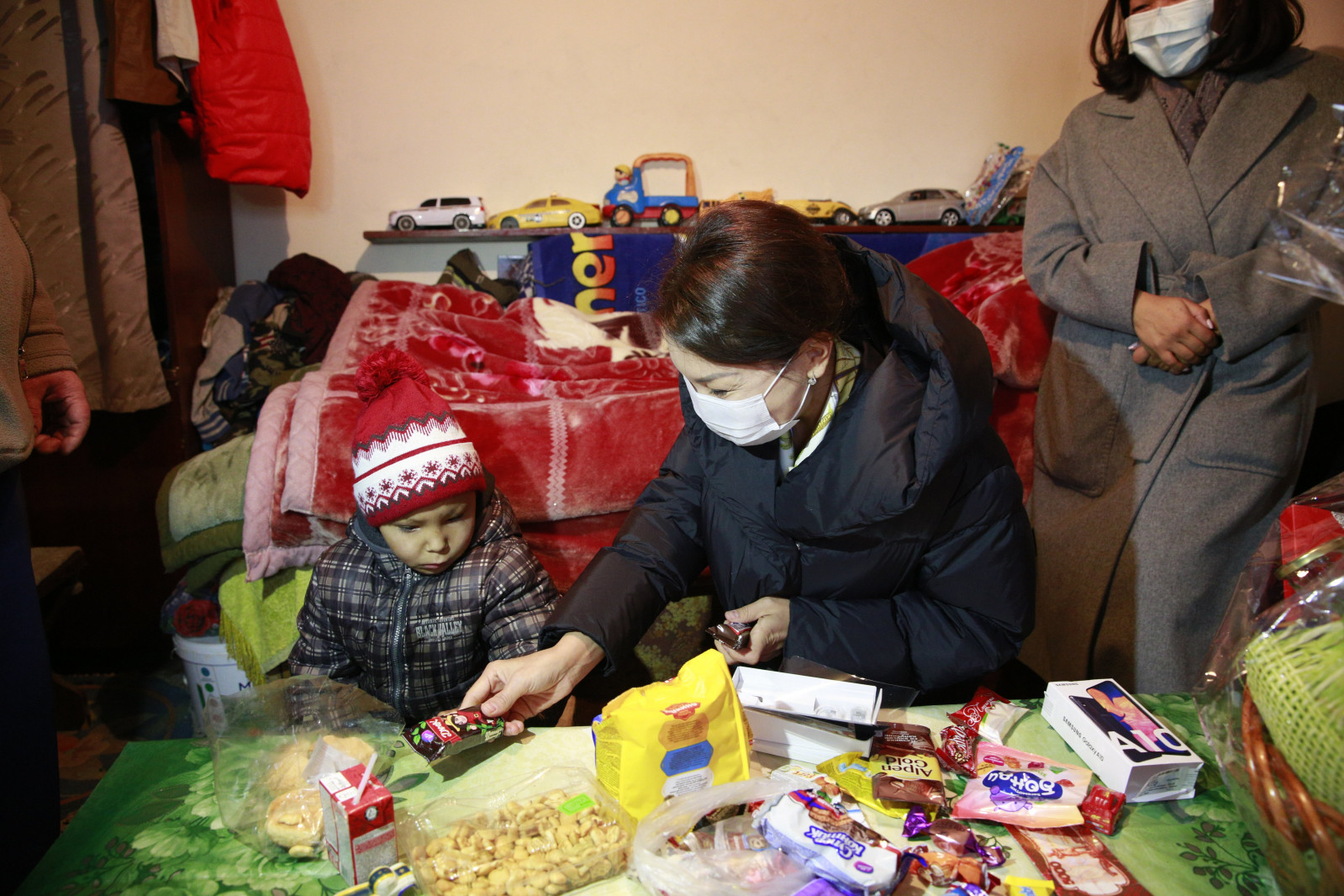 Вице-премьер-министр Кыргыз Республикасынын Өкмөтүнүн атынан аларды келе жаткан жаңы жыл майрамы менен куттуктап, материалдык жардам берди.