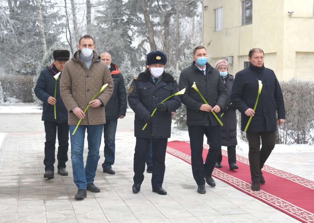 Иш-чара “Баатырлар аллеясында” жайгашкан генерал – майор А. Шамкеевдин айкелине гүлчамбар жана гүлдөр коюлуп, бир минуталык эскерүүдөн башталды.
