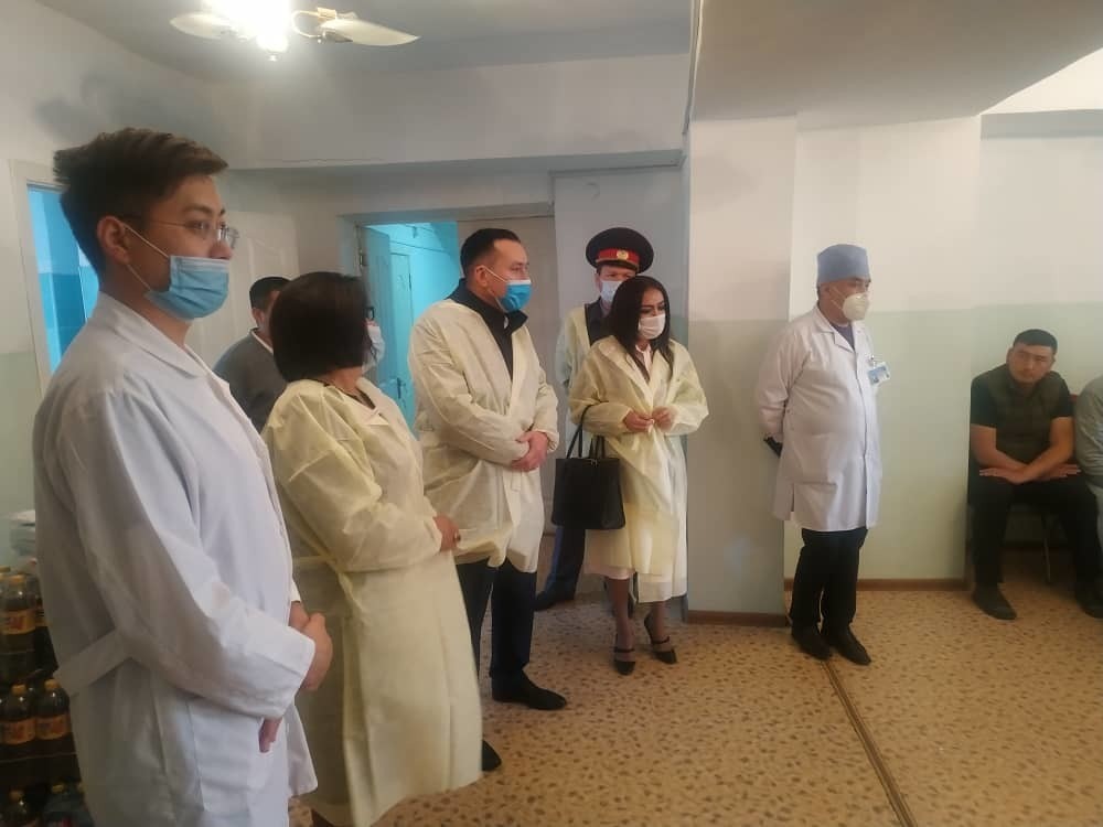 Ал эми ИИМдин Бейтапканасында 46 милиция кызматкери дарыланууда. ИИМдин Коомдук кеңеши өздөрү менен кошо алып барышкан минералдык суусундуктарды, 150 бет кап, жеке коргонуучу каражаттарды, кол каптарды милиция кызматкерлерине тапшырышты. Бейтапканага барган учурунда жабыр тарткан милиция кызматкерлери Коомдук кеңештен бир катар маселелерди чечүүгө көмөктөшүп коюну айтышты: кенемте төлөө, жеке лабораторияларда акысыз анализдерди тапшыруу.