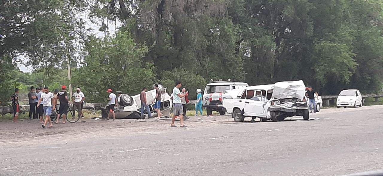 “Үч “Хонда Одиссей”, “Hyundai”, “Жигули” үлгүсүндөгү унаалар кагышкан. Алдын ала алынган маалыматтар боюнча эки киши жабыркаган”,-деди ага тескөөчү Тимур Мирсадык уулу.