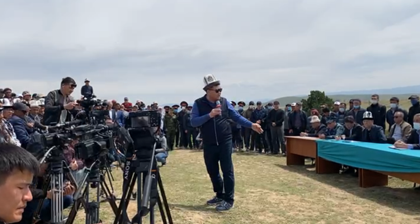 Учурда ал чогулуп турган элдин пикирин угуп жатат.
