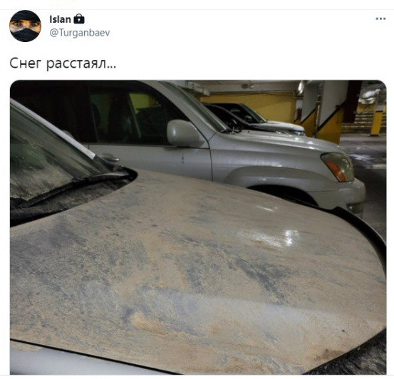 Эскерте кетсек, кечээ Бишкектин тургундары жааган кардын өзгөчө түскө ээ болгонун байкашкан. Ал күрөң жана кир көрүнөт. Экологдор бир нече себептерди аташкан. Алардын айтымында, Казакстандын түштүгүндө катталган чаңдуу бороон кардын булганышына таасирин тийгизиши мүмкүн. Дагы бир себеп Кара-Кечеден чыккан күрөң көмүрдүн колдонулушу болду. Кыргызгидромет азырынча түшүндүрө элек.