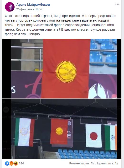 Алар чемпионатка катышкан бардык өлкөлөрдүн желектерин сатып алышат. Биздин өкүлдөр бул катачылыкты сыйлоо аземи учурунда гана байкашкан.