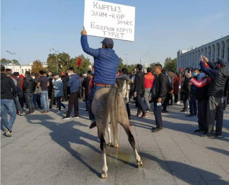 Гуля Алмамбетова өзүнүн Фейсбуктагы баракчасына митингге ат менен келген кишинин сүрөтүн жарыялады.