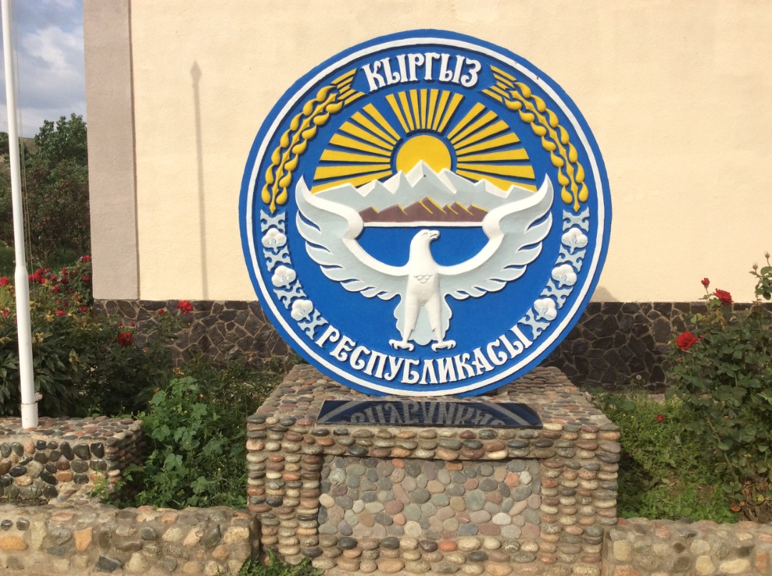 Герб 4 негизги элементтен турат-Ала-Тоо, Ысык-Көл, Ак-Шумкар жана буудай менен пахтанын сабы менен башынан турат…